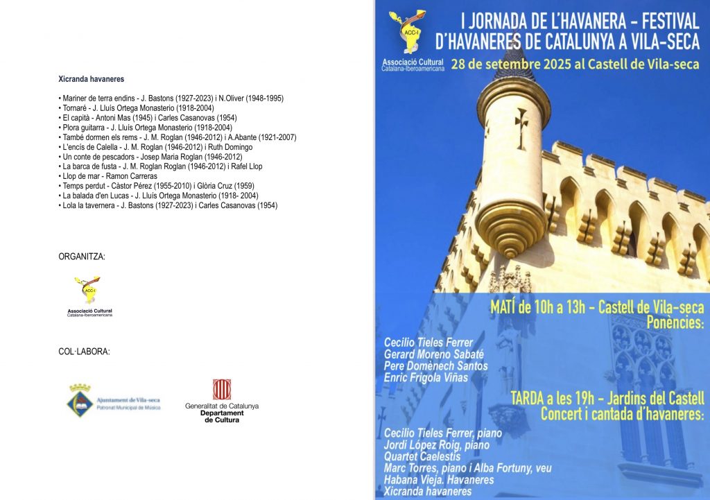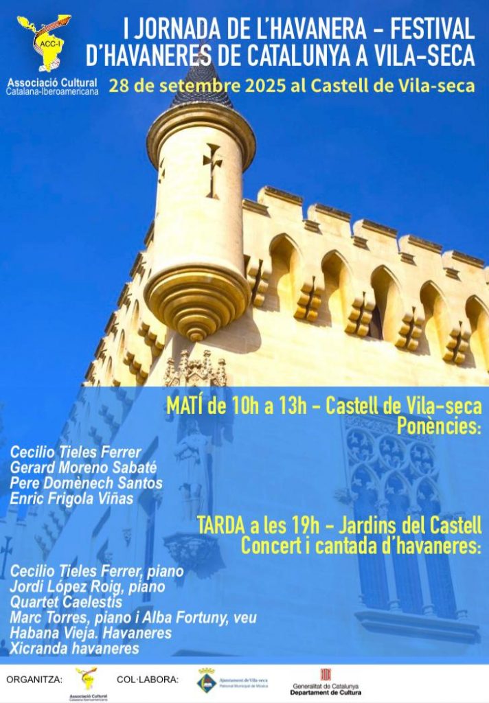 El diumenge 28 de setembre de 2025 tindrà lloc al Castell de Vila-seca la 1a Jornada de l’havanera. Un dia ple d’activitats al voltant del mon de l’havanera amb 4 ponències molt interessants al matí i concerts amb presència de diferents solistes i agrupacions per la tarda. No hi falteu, us hi esperem!!